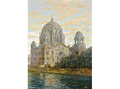 geboren 1958 in Osterholz-Scharmbeck. 1982 ging er nach Berlin. Neben seinem Studium der Gesellschafts- und Wirtschaftskommunikation entwickelte er als Autodidakt seinen Stil der Phantastischen Architektur, wie er seine filigranen und oft großformatigen Ölarbeiten umschreibt. Bekannt wurde er 1987, zur 750-Jahrfeier Berlins. Seine Visionen der Inselstadt Berlin, in denen er existierende Bauwerke verfremdet, trafen den Nerv der Zeit. "Ohne Gott herrscht Eitelkeit der Eitelkeiten". Diesen lateinischen Ausspruch kann man allen Werken von Jochen Bruenjes als Motto voranstellen. Die quantitativ größte Werkgruppe in seinem Schaffen bilden die gigantischen architektonischen Landschaften seiner Bilderreihe „GESCHICHTEN AUS MEGALOPOLIS”. Die Werke versteht er als Zivilisationskritik und als Darstellung der Vergänglichkeit. In seiner bisher 25jährigen Schaffensphase entstanden über 500 Bilder, die in privaten und öffentlichen Sammlungen, sowie Museen hängen.