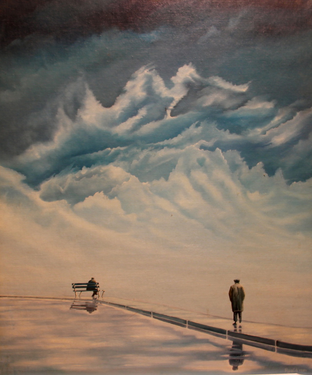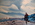 Oft taucht in den Motiven die Silhouette eines einsamen Betrachters auf, der, einbezogen in die Umgebung,